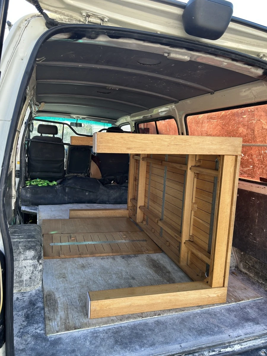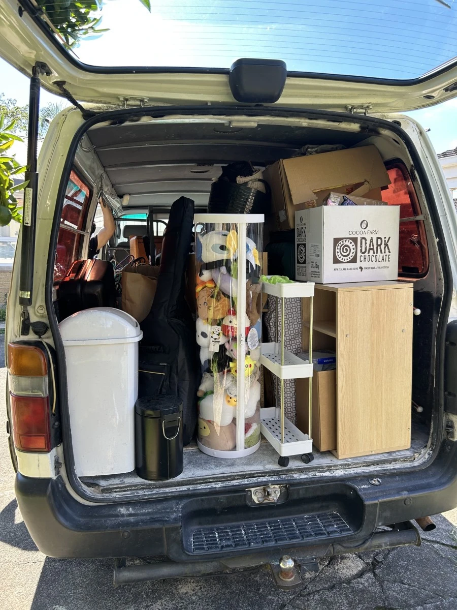 Van details: Toyota jumbo van, loading room L3.5M x W 1.8M x H1.6M, can fit super-king size bed.