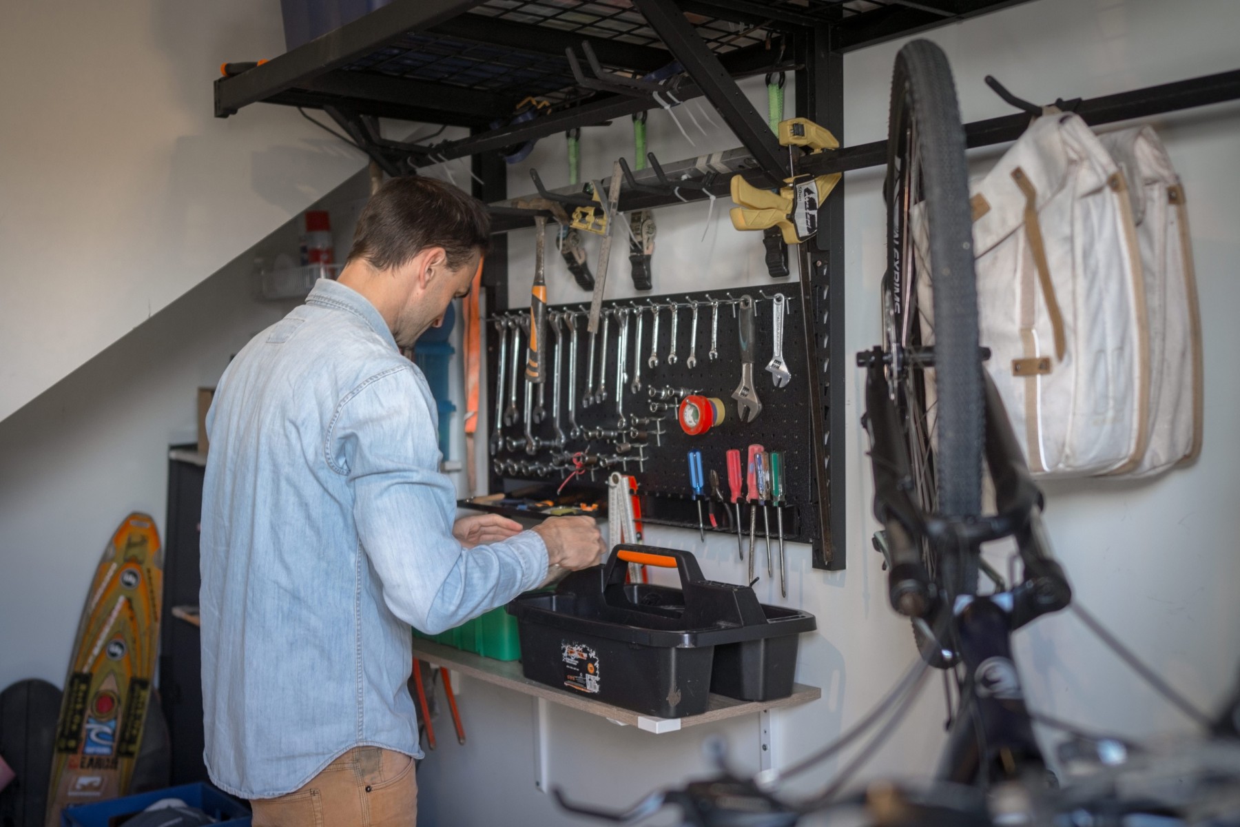 Start by sorting through the tools and equipment in your shed and getting rid of anything you haven’t used in the past year or two.