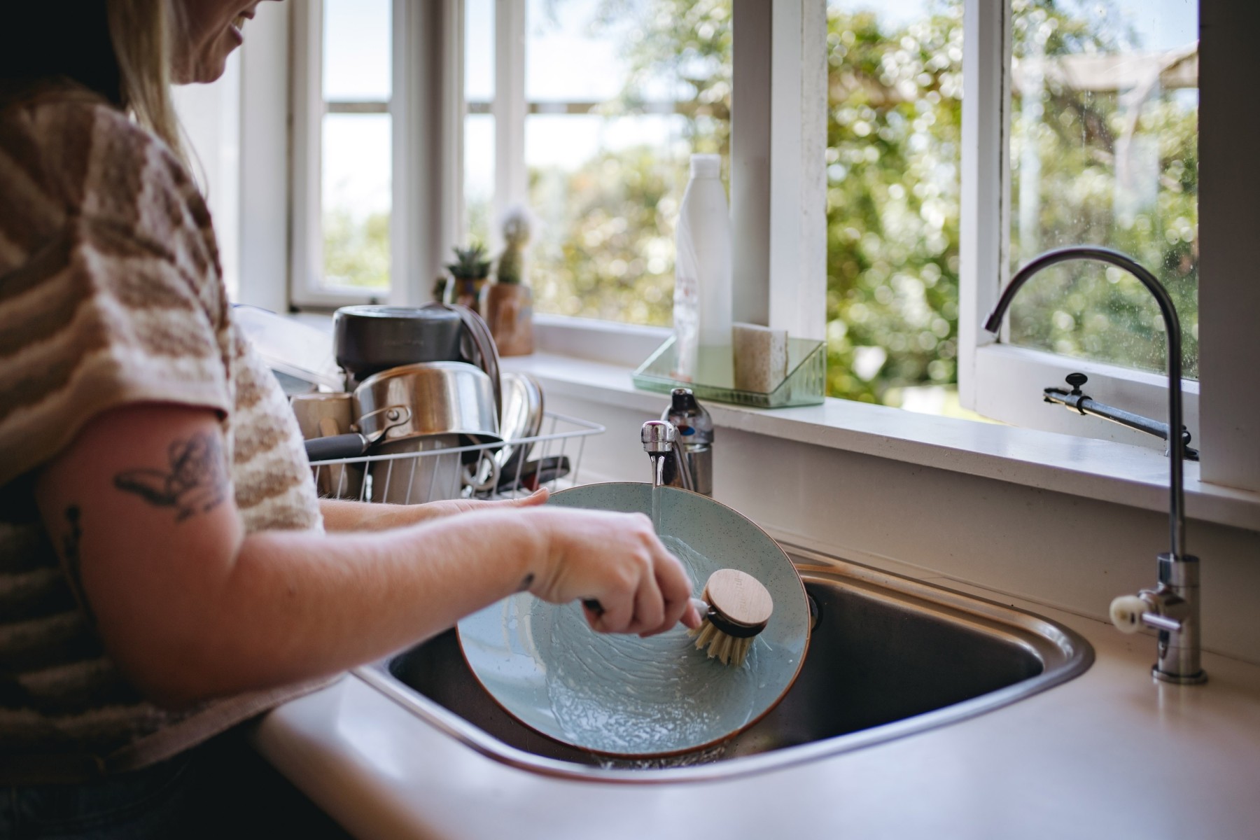 Spray bottle tops contain different plastics which aren’t easy to separate.